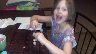 Abby painted a picture for her cousin Ashlee, then had a tea party with her stuffed animals.